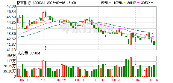 证券时报·数据宝统计显示,招商银行今日收盘价为41.75元,下跌1.11%,日换手率为0.42%,成交额为36.00亿元,全天主力资金净流出9.65亿元,近5日该股累计下跌2.52%,近5日资金合计净流出18.06亿元。